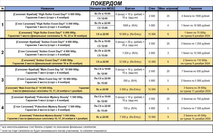 1) Сегодня 24 ноября в 22:00 мск (либо в 21:00 по Калининграду) на ПОКЕРДОМЕ состоятся сателлиты к следующим турнирам: