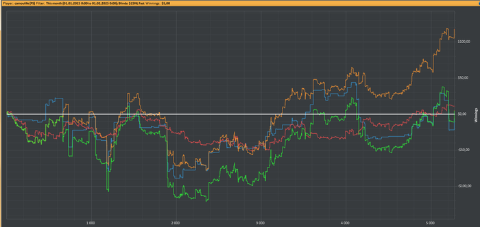 Просто примерно 70 би, играя 25/50 я не добирал, когда казалось, что я на правильном пути и скоро пойду выше)) И да, на тот момент меня это жёстко психологически подкосило. Возможно именно после этого я и стал ассоциировать доход как что то временное, думая, что лучше я потрачу его сейчас чем он растворится потом.