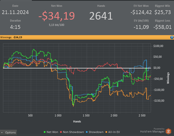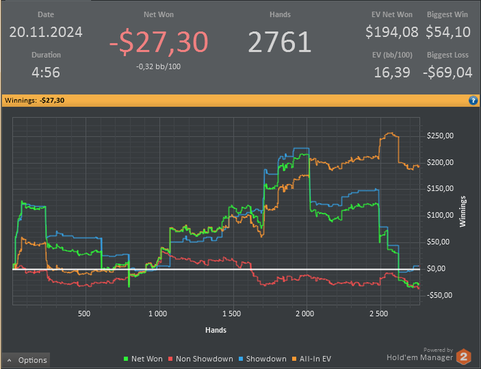 Дистанция и почасовка абсолютно скатилась, а тк я человек семейный, периодами было очень сложно находить баланс между покером и семьёй, одновременно решая бытовые вопросы и свои накопившиеся эмоции, которые в принципе и не давали ни малейшую мотивацию на прогресс. Учитывая, всё это, в своих глазах общая картина, без оправданий, выглядит закономерно и крайне серо.