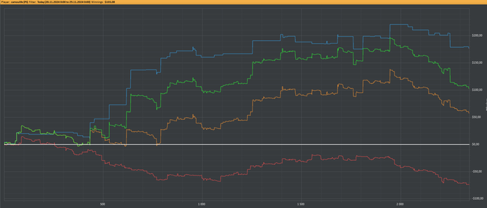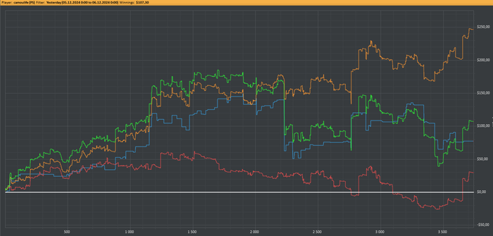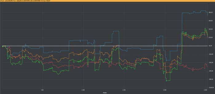 Сколько лет в этом деле, но привыкнуть к таким отрезкам как последние четыреста рук на скрине, не получается. Такие волны это просто убийцы винрейта, абсолютно без шансов как на префлопе так и на постфлопе. При этом я играл даже лучше чем вначале сессии. С этим сталкиваюсь на столько регулярно, что в подсознании автоматически вырисовываются закономерности Понятно, что это мои загоны , но та регулярность таких отрицательных волн, непроизвольно воспринимаются мозгом, как какое то инородное событие. И здесь я не имею ввиду, что играю как Линус и всё равно такие волны, ,конечно есть ошибки , наверняка у него поровнее это выглядит, но ошибки есть и в плюсовом графике. Если представить, что мой скил или ВР равен 0/100, то получается, всё что выше нуля это положительная дисперсия, а ниже - отрицательная. Из этого следует, что по факту, мне просто всё время везёт когда я завершаю сессию на 1+бб/100.