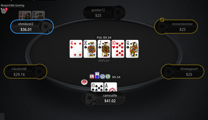 Total pot: $18.75 (Rake: $0)