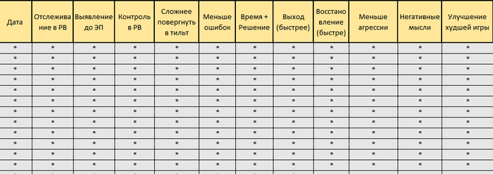 К слову сказать, посмотрев очередное отличное видео от Avr0ra и Brd про лучшие способы обучения, я удивился когда именно книгу Тендлера поставили в самому низу списка. Для меня та информация которая в книгах представлена и как она структурирована, стало отличным пособием для роста в психологии покера, хотя и не являюсь новичком. Наверное, у каждого те или иные начальные базовые навыки развиты лучше или хуже и в психологии я был очень слабо подкован, но на своём опыте могу смело рекомендовать обе книги Тендлера. Я также делал по книге, с некоторыми своими дополнениями, разные профайлы, что тоже, в какой-то мере, работает и для кого то может стать хорошим бустом. Для наглядности, возможно кому то пригодится, выглядило это приблизительно так:
