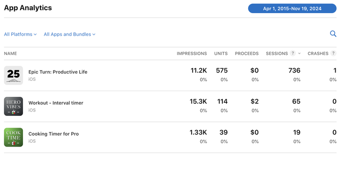 Всего опубликовал 4 приложения, 2 из которых удалил из-за ненужности пользователям. Те 2, что остались, принесли мне за 3 месяца существования их в apple store 3$.