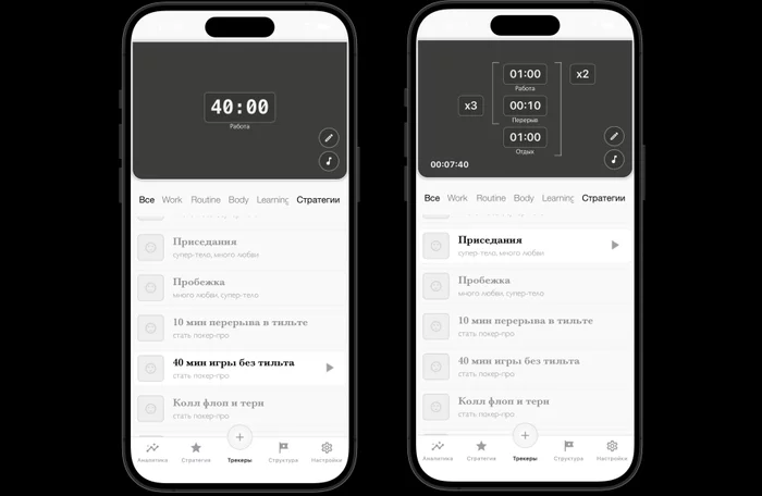 Но будет третий, он будет выглядеть как таймер слева, но будет кнопка "Сделано" и 40 мин сразу пойдут вам в зачет.