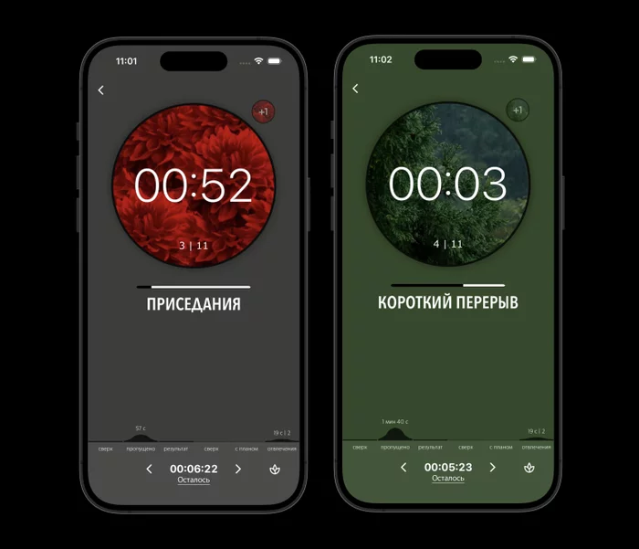 Таймер и интервальная программа при нажатии play открываются в такие окна.