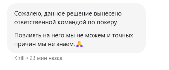 katala385, тоже заблочили покер с такой же формулировкой,да и написал как и у тебя тот же Кирилл!