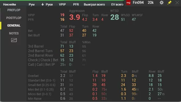 Высокая агра также может указывать на жесточайший оверплей. Нет линии бет-колл, перекос в бет-3беты с запихиваниями пораньше и вырезанием блефов оппов.