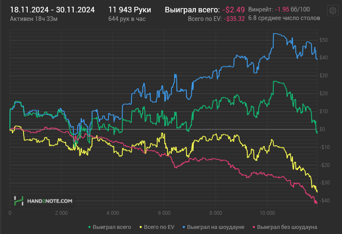 Ноябрь начался не очень хорошо, умер пес + 0 отдачи в покере + проблемы со здоровьем заставили задуматься не стоит ли идти работать там же точно будет + по ев.