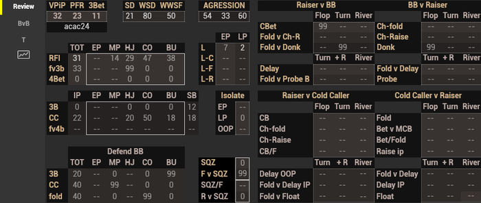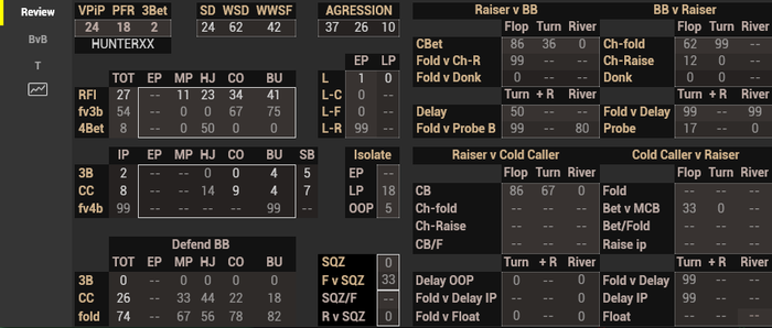 Там помню было задание посмотреть сколько блефов в определенных спотах.