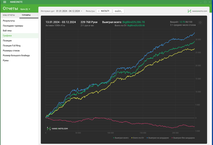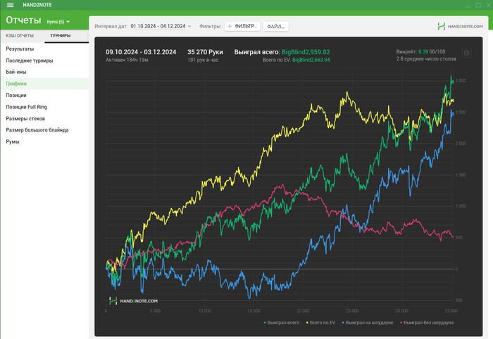Раньше кассу не вел. Вот с октября начал. Да и катал так себе, сейчас то дистанция фигня. По графикам как то так с октября и за год: