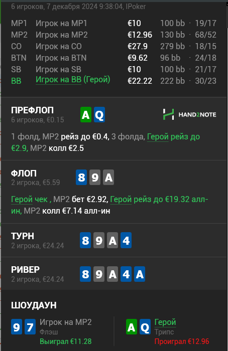 Не понимаю как эти руки играть, у меня статы сейчас слишком лузовые, поэтому меня будут шире 3бетить/сквизить.