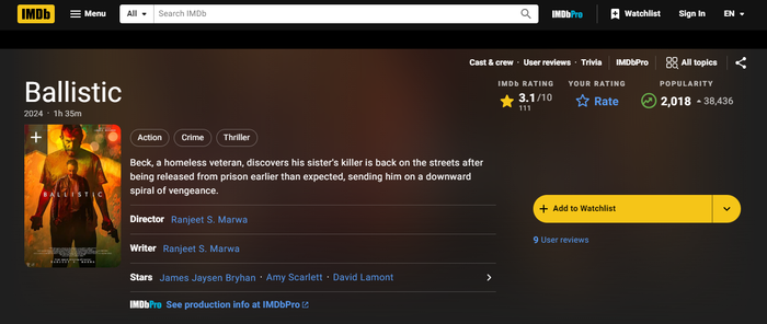 И решил посмотреть фильмы с рейтингом IMDB и Кинопиоск 2/2,3/3 ...и зря потратил время