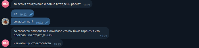 Всë ,там больше нет никаких доп условий, это нормальное мужское спортивное пари.