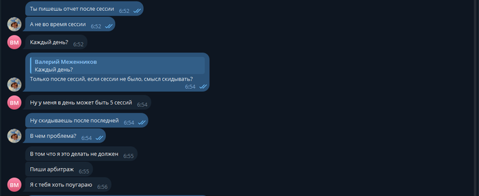 wellhook, это сумашедший человек требует от меня, отчëтов после каждой сессии, у него в голове, там какие то условия, сегодня он начал мне писать в 6 утра.