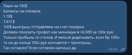 Пари было на 100к рук 4 декабря по его утверждениям он наиграл только 10к. (За 14 дней)