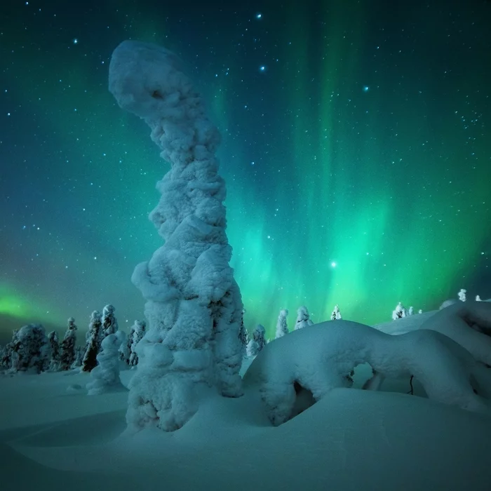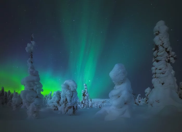Раз! И она выхватывает из морозной темноты застывшие, заснеженные силуэты северных елей.