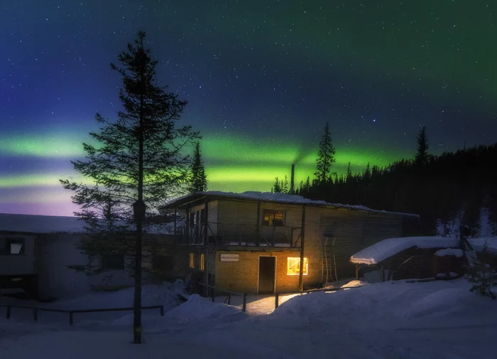 Эта ночь была сказочной. В нашем уютном домике печка попыхивала теплом, за окном трещал мороз, и ели укутывали свои мохнатые лапы в снежные одеяла. И небо, зимнее небо вспыхивало огненными лентами, дразнило зелёными драконьими хвостами, рисуя свою волшебную историю, от которой невозможно отвести глаза. В такие моменты как-то забываешь и про мороз, и про то, что нужно снимать.