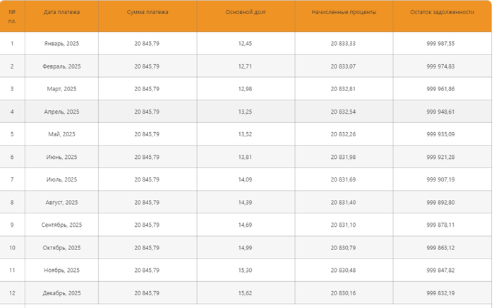 Второй кредит 25%. Сумма долга 1млн рублей.