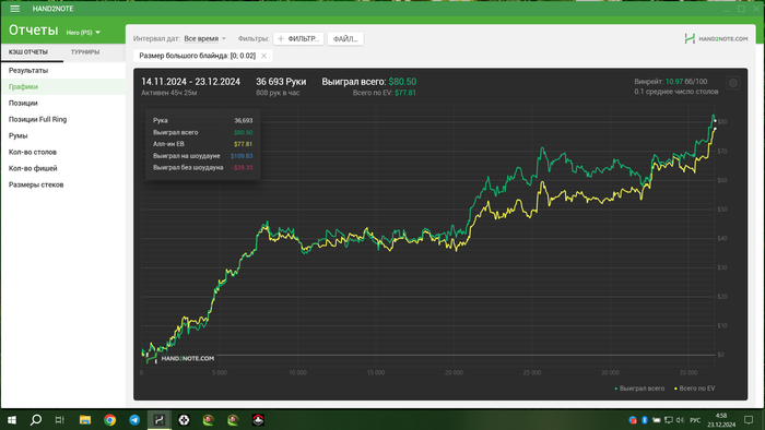 нл 2 раш покерок +10.97 bb\100 ( 36 693 hands )