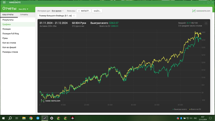 нл 10 рег столы покерок +5.17 bb\100 ( 68 804 hands )
