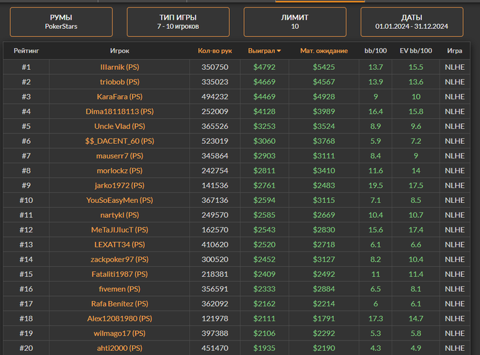Ну и маленькое достижение,забрал топ 1 на нл10фр за 2024год