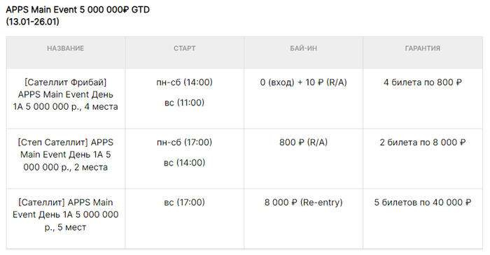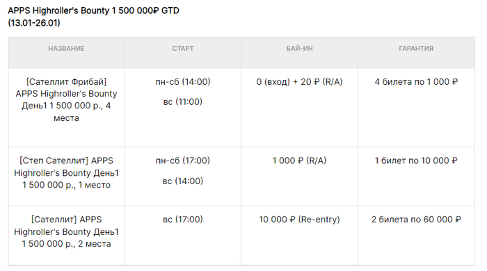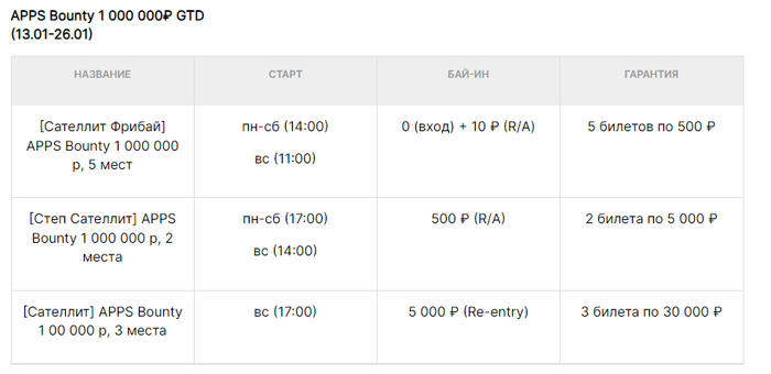 Сателлиты будут проходить ежедневно с 13 по 26 января с бай-инами от 0р.