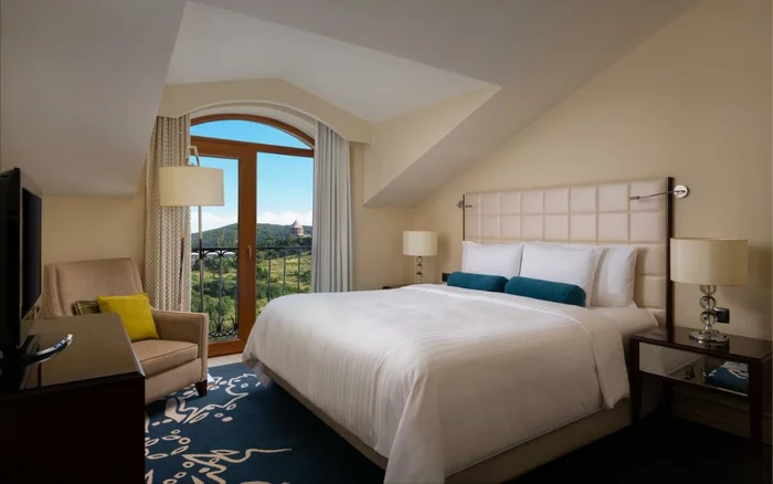 1️⃣ Отель «Marriott» — шикарный 5 ⭐️ отель с лучшим соотношением цена/качество, расположенный в живописном районе Цахкадзора. На территории этого отеля расположено казино Royale Signature - место проведение будущей серии. В стоимость проживания включен завтрак, а номер обойдется от $88/ночь. Этот самый удобный вариант, его бронируют чаще всего, поэтому стоит поспешить.