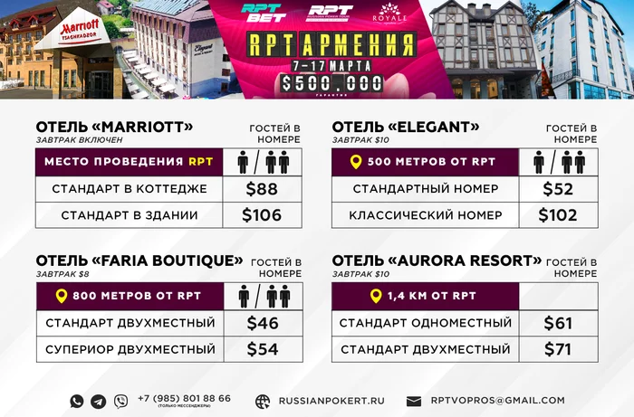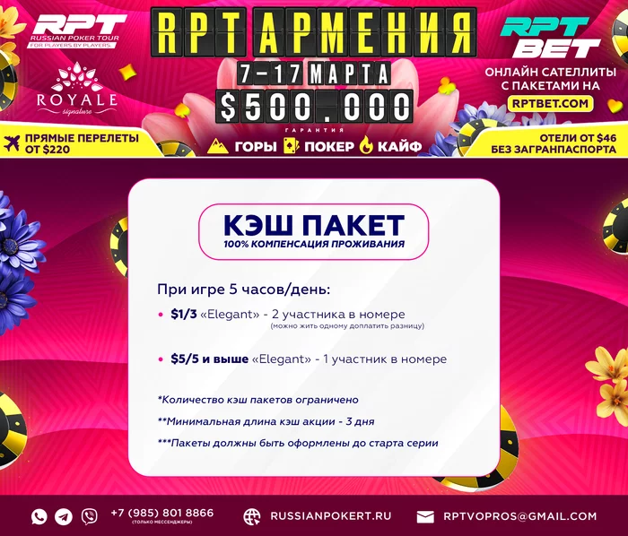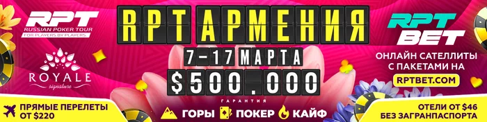🏆 Серия RPT в Цахкадзоре пройдет с 7 по 17 марта, общая гарантия серии - $500,000. Забронировать проживание можно в течение нескольких минут через нашего менеджера - Viber / WhatsApp / Telegram +7 985 801 8866 (только мессенджеры).
