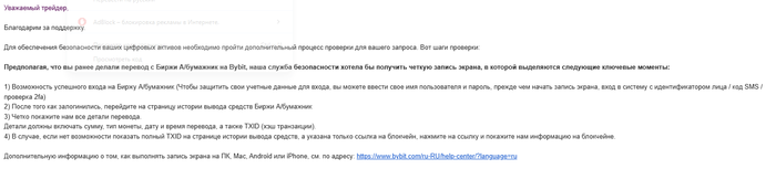 3. зашёл на ByBit с этой почтой + показал код аутентификации + показал данные аккаунта ByBit (номер, ФИО, паспорт данные)