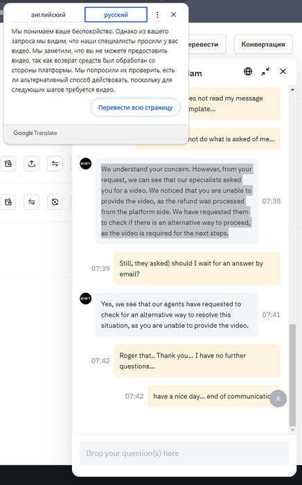 И опять запросили видео перевода о котором я им целый месяц говорил, что у меня его нету...