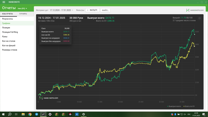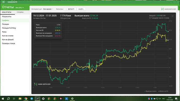 Alfa-play @ 19.01.25А буквально вчера барахтался на NL 5 с win rate 1 bb\100. До сих пор храню график с нл 5 где за 100тыс рук я заработал чистыми около 50$ за месяц игры. сегодня 50$ это 4-6 часов игры.