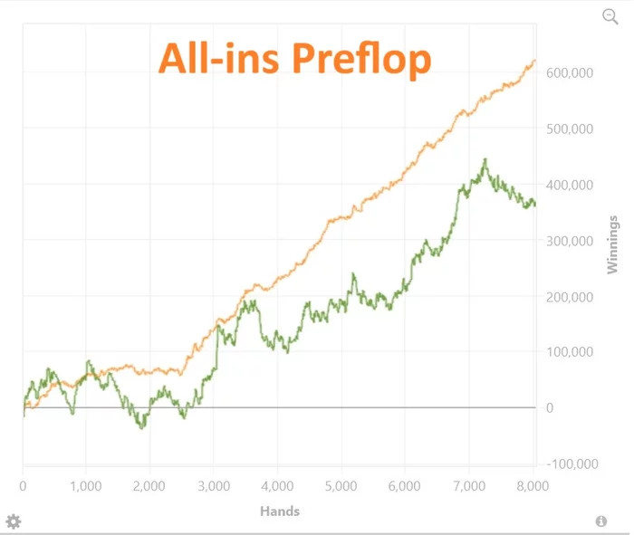 Предлагаю тут или в моем ТГ-канале обсудить, как приведенные выше цифры повлияют на нашу стратегию игры на начальных уровнях блайндов и в конце Rush-стадии и сделать какие-либо выводы.