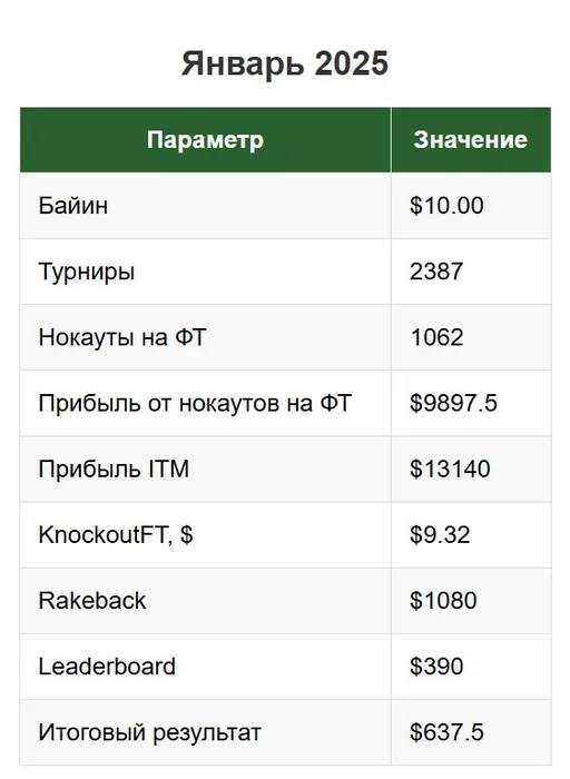 FranSiSko, можешь рассказать пожалуйста где это найти? Потому что я вижу общее количество выбитых но не на финалке. Я катаю трешки пока, ну как катаю, 600 турниров в месяц, часто один стол, для интереса просто. Но на первые 500 турниров винрейт был совсем убогий что-то типа 3ев. Пытаюсь сейчас агрессии добавить. Удивляюсь когда вижу регов с проходкой на финальный стол 60% поэтому и спрашиваю. Там тоже есть момент, что если даже пролезешь на финалку 7-8, тебя так лузово закрывать будут, что удвоиться не так сложно. Поэтому и не могу решить, выставляться за монетки в раш стадии или нет.