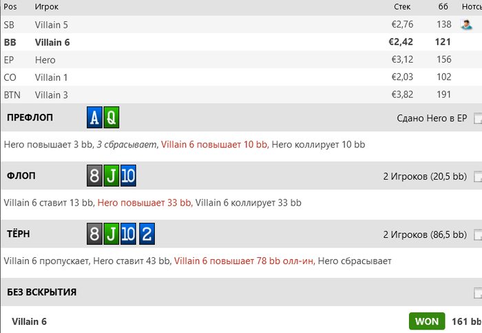 Не думаю, что против такого оппонента я бы когда-нибудь нашел фолд, и в целом был уверен, что агрик исполняет.