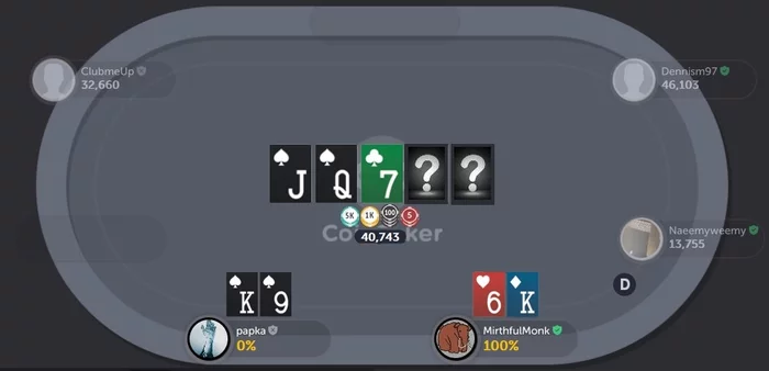 Но эмоции, конечно, были прям супер глубокими и бесценными, за что отдельное спасибо дилеру. А уж как этой "девятке" были рады мои оппоненты, словами передать точно не получится — зато, хотя бы, у них теперь отпали вопросы, почему "папка", до сих пор, не является звездой Топового "CoinPoker", и ставить против меня они готовы с ещё бОльшим удовольствием, а это, определённо, хорошие новости...