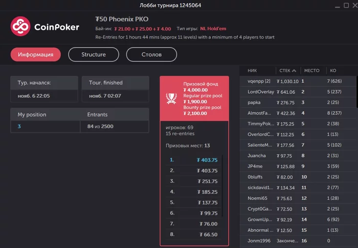 (мой личный рекорд, на текущий момент, если брать во внимание исключительно полную отборочную сетку именно к данному турниру — а Центроллы-сателлиты, которые стартуют каждый час к другим, далеко не самым скромным и, не так уж редко, оверлейным МТТ, имеют аж на один предварительный раунд меньше — в районе 400 долларов за попадание в минимальную призовую зону)