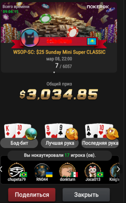 ✅ Дележка в фазовом турнире на GG Poker (+$100,000)