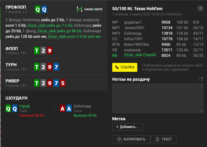 Yelizar, думаю, что выбросить QQ на 4-бет не прям хорошая затея.