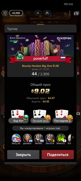 Один из наиболее сложившихся турниров в сегодняшнем игровом дне. Очень сильно теряю концентрацию в поздней стадии турнира и не могу найти способа как с этим бороться.