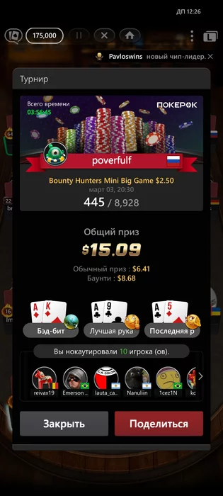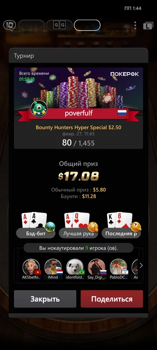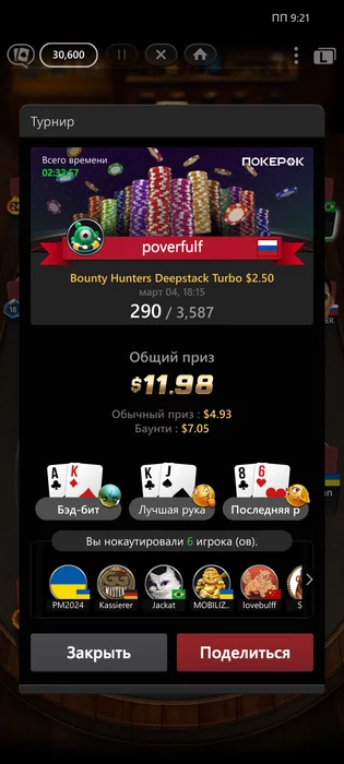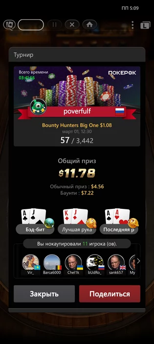 Скажу честно больше пяти турниров в день не могу отыгрывать так как теряю концентрацию и устаю. Сегодня сессия продлилась около 6 часов.