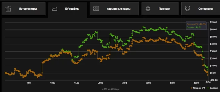 Плюсовый день, хоть и не везучий. 75\25 больше проиграл, чем выиграл((( All-in EV плюнуло на меня с высокой колокольни)))
