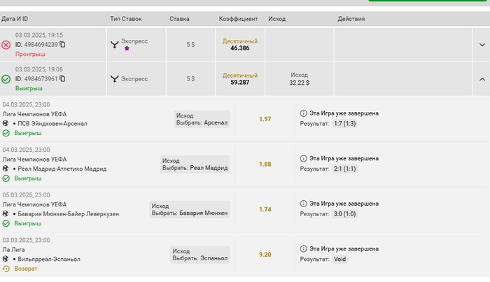 Тут немного не повезло, я так понял ластецкий, самый главный матч был отменен. Поэтому по бабкам довольно скудненько вышло, но вышло в +, а это главное. ОБРАТИТЕ ВНИМАНИЕ НА СУММУ ВЫИГРЫША!