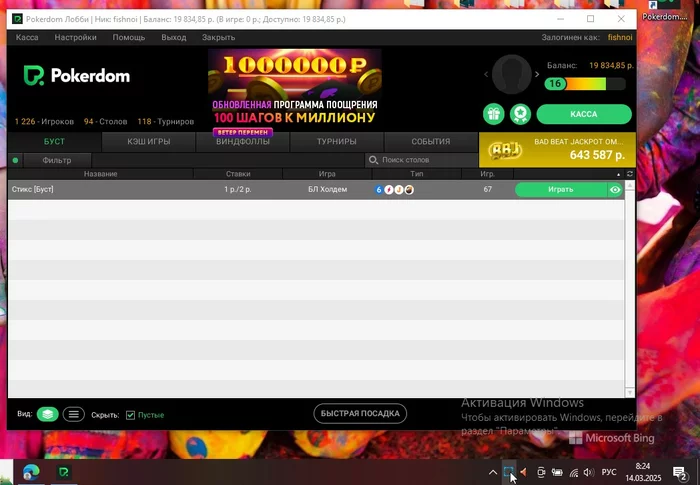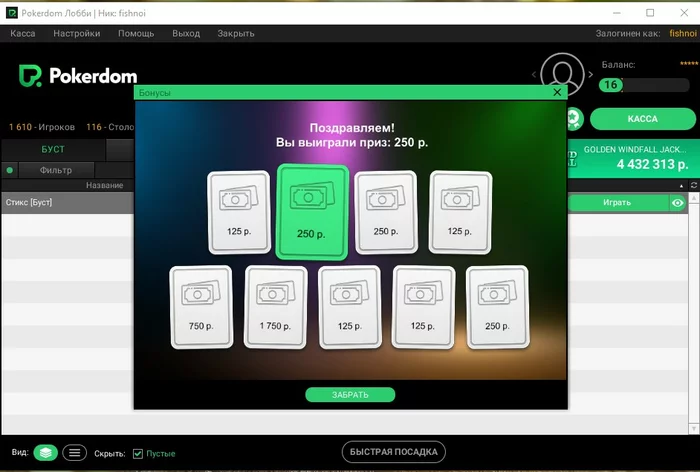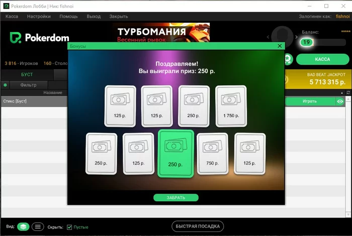 и вчера еще сат сыграл (вылетел во второй играемой раздаче) выдали за собранное карэ 5555 . А в остальных плюшках совсем без меня, ни разу не участвовал в розыгрыше джек пота за месяц. В общем просто катаю в ноль и пиздец