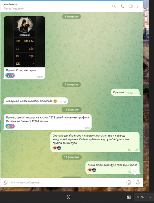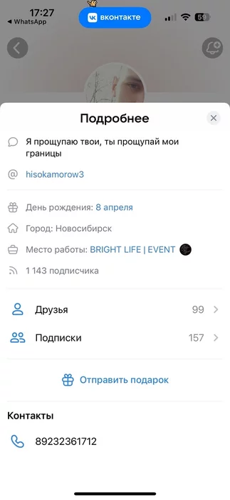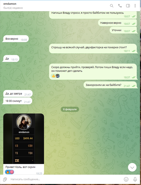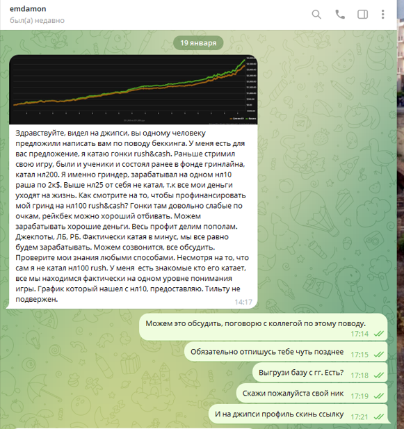 Вскрылись новые подробности и настоящие данные хиро. Была еще одна конфа в тг , где мы созванивались и проводили аудит, из нее он просто вышел и не потер сообщения. Сменил ник пользователя на @hisokamorow3 . Была найдена открытая страница вк где был указан данный тг как способ связи (@hisokamorow3 ) + номер телефона , так же совпадает никнейм странички. Страница абсолютно не похожа на фейк, друзья все живые + есть однофамильцы (родственники).