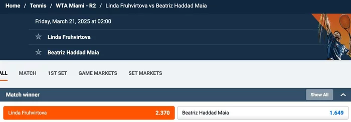 Глядя на результаты Хаддад - она совсем в ауте. У неё есть две крайности: либо она в отличной форме и уверенно тащит, либо она не в себе и сливает без борьбы. Пока она не в себе, поэтому имеет смысл сыграть от Фрухвиртовой.