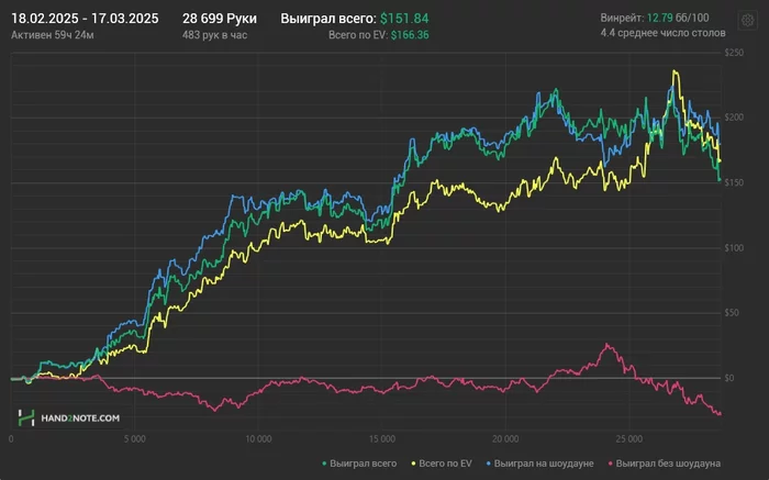Собственно серьезно играть в кеш и наигрывать вменяемое кол-во рук начал с декабря и тогда же пришло осознание того, что этому делу я хочу посветить гораздо больше времени. У меня как мне кажется есть неплохие вводные чтобы играть сразу с микросов: живу один, ренту за квартиру платить не надо(только ЖКХ), на еду в целом могу не тратиться сильно ибо могу есть у родителей. Следующий шаг для меня был очевиден - бросить учебу (2 курс) и посветить всего себя покеру, на такое решение меня также подтолкнул проект Greenline Junior который мне четко показал как можно развиваться в покере и дал четкие ориентиры (произошло это где то в середине января).