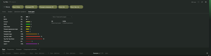 Интересно от чего идет рассчет той или иной категории рук в H2N в той или иной линии. К примеру мы пытаемся понять насколько отлично от солвера люди реги играют ту или иную текстуру. Берем 3бп, сб-бу. Нас интересует бет в миссед и его наполнение.