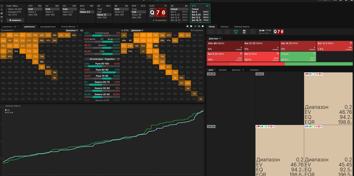 Следует добавить, что ресерч сделан под лимит нл 100 старзов. мы всегда должны учитывать разницу в диапазонах солвера и людей, ведь может оказаться так что с префлопа у людей к примеру в разы больше тп ( это например может касаться более нижних лимитов, где люди защищаются коллом шире через рук АQo AQs, которые должны играть через 4бет всегда почти, но игрют коллом. из-за чего изначально их весовка тп будет гораздо выше чем у машины. но здесь лимит нл 100 и по ресерчу у людей близкая игра с этими Qx относительно ренжей солвера для нл500.