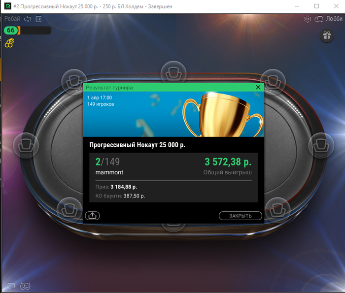 Scavriga, просто львиная доля выигрышей была в слотах. Выиграл около 400к и потом с переменным успехом в покере выигрывал, а сливал в слоты, поэтому сложно посчитать точный плюс. В кеш точно минус около 100 к в 6 карточную омаху хай лоу с топ регами)