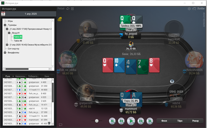 Binarius1 @ 31.03.25Игра на покер дом. Ник: mammont. По ощущениям в плюсе около 250 к. В планах вывести 3 000 000 р, что бы это удалось, нужна дисциплина.